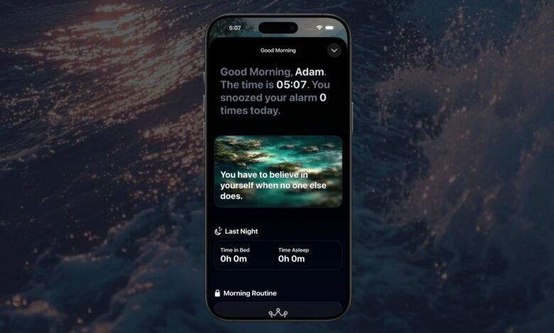 When you wake up in the morning, you’ll see a personalized morning routine with how many times you hit snooze, a motivational quote, sleep information, and a morning routine with what you’re looking to accomplish with the extra time.