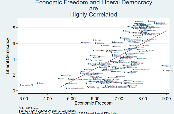 The bottom line is if you care about economic freedom, democracy is the way to go and if you care about democracy, economic freedom is the way to go.
