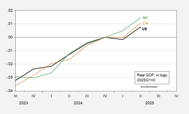 Mark Zandi has asserted that whether the US goes into recession depends on how CA and NY economies evolve. If we rely on GDP to define activity, then the outlook appears sunny.