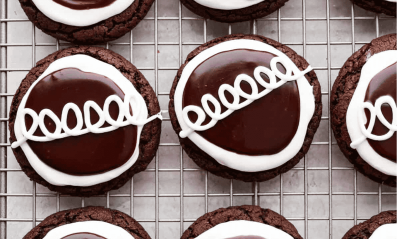 - Add Marshmallow Frosting: Spoon the cream into the center of the cooled Hostess Cupcake cookies. Spread it into an even circle, leaving some of the cookie exposed. Don’t frost the whole surface. Let the cookies sit for at least 10 minutes before topping with ganache.