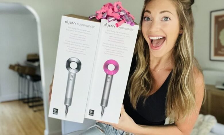 woman holding two Dyson Supersonic Nural Hair Dryer boxes