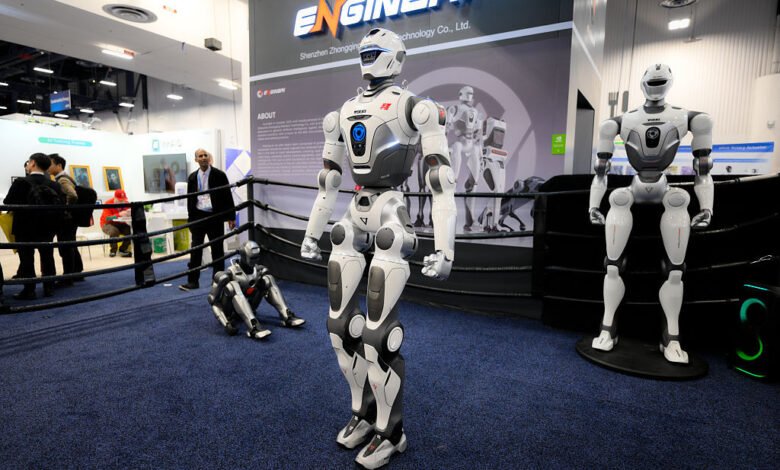 One of the exhibits that drew the largest crowds involved robots from the Chinese company EngineAI, which is developing humanoid robots. The bots, dubbed the T800 (a nod to the Terminator franchise), were in a mock boxing ring and were styled as fighting machines. That said, I never saw any of the bots actually hit each other. Instead, they would sort of shadowbox near each other, never actually making contact. They were also a little unpredictable. One kept walking out of the ring and into the audience, which naturally got a rise out of onlookers. At another point, one of the bots tripped over its own feet and then face-planted on the floor, where it lay for awhile before it decided to get up again. So, not exactly a Mike Tyson situation, but the machines still managed to evoke a spooky kind of humanoid behavior that made for high-quality entertainment. I overheard an observer quip: “That’s too much like Robocop.”