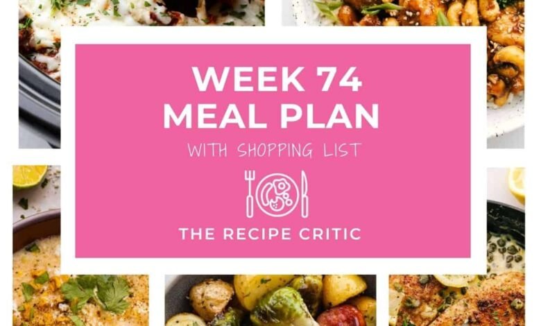 Collage of the hero images from the recipes in this weekly menu plan.Collage of the hero images from the recipes in this weekly menu plan.