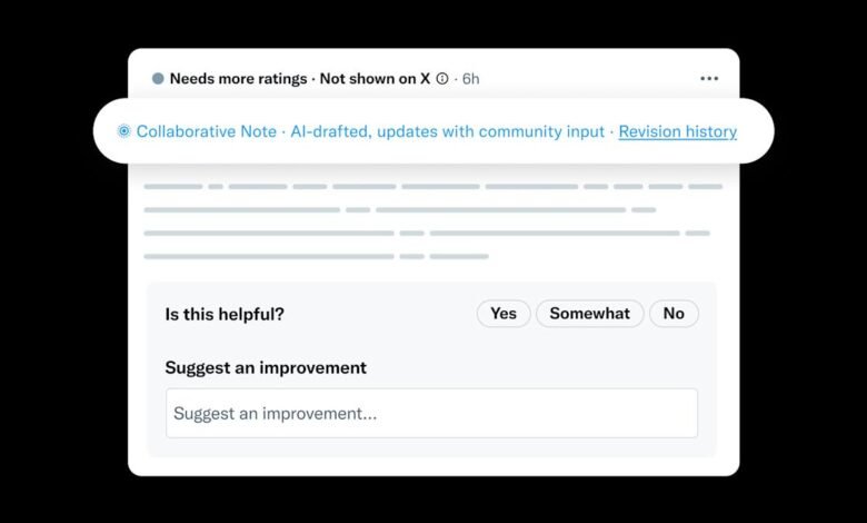 According to the company, when an existing Community Note contributor requests a note on a post, the request “now also kicks off creation of a Collaborative Note.” Contributors can then rate the note or suggest improvements. “Collaborative Notes can update over time as suggestions and ratings come in,” X says. “When considering an update, the system reviews new input from contributors to make the note as helpful as possible, then decides whether the new version is a meaningful improvement.”