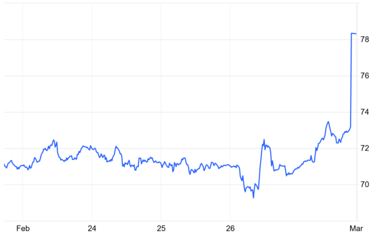 Home/Oil Jumps 13% Oil Jumps 13% WisconsinDigitalNews,com2 hours ago 0 Less than a minute Tensions in the Mideast cause a spike. One hour into futures trading: Source link WisconsinDigitalNews,com2 hours ago 0 Less than a minute