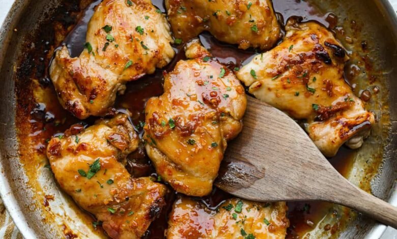 - Bone-In Chicken Thighs: If using bone in, skin on thighs, sear skin-side down for 5 to 6 minutes until crisp. Flip, add the sauce, and bake for 35 to 40 minutes, until the chicken reaches 165°F.