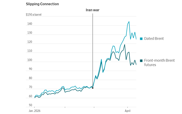 Source: WSJ, 14 April 2026. Front month now is for June.