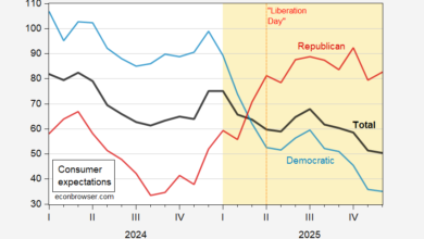 From the December U.Michigan Survey of Consumers: Figure 1: U.Michigan Survey of Consumers Consumer Expectations, Overall (bold black), Democratic/lean Democratic…